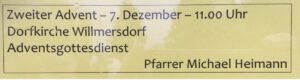 Adventsgottesdienst mit Bläsern in der Kirche Willmersdorf