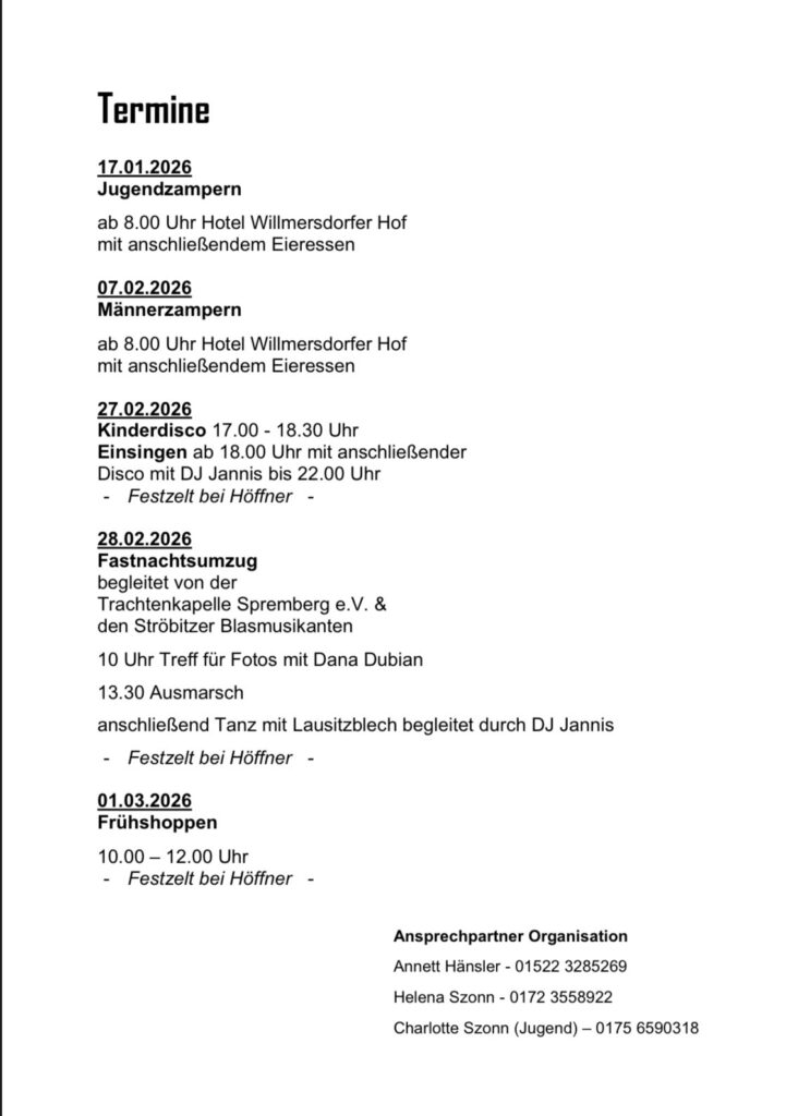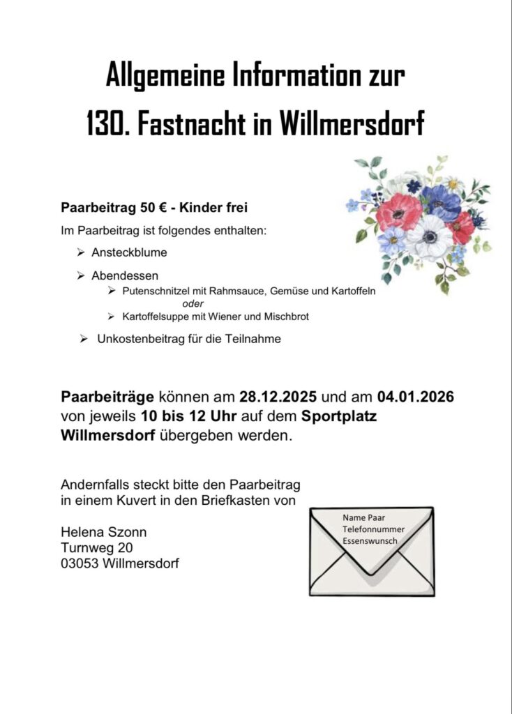 Informationen zur 130. Fastnacht in Willmersdorf Auf dieser Seite gibt es Informationen rund um die große 130. Fastnacht in Willmersdorf.